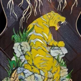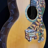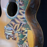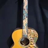We can carve and inlay names, phrases and initials and we can even carve and inlay designs, faces and scenes from your photographs. Basically, if you can think of it we can get it onto your instrument.