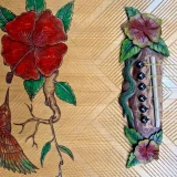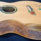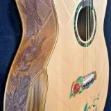 We can carve and inlay names, phrases and initials and we can even carve and inlay designs, faces and scenes from your photographs. Basically, if you can think of it we can get it onto your instrument.