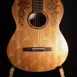 We can carve and inlay names, phrases and initials and we can even carve and inlay designs, faces and scenes from your photographs. Basically, if you can think of it we can get it onto your instrument.