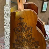 We can carve and inlay names, phrases and initials and we can even carve and inlay designs, faces and scenes from your photographs. Basically, if you can think of it we can get it onto your instrument.