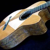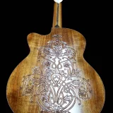 We can carve and inlay names, phrases and initials and we can even carve and inlay designs, faces and scenes from your photographs. Basically, if you can think of it we can get it onto your instrument.