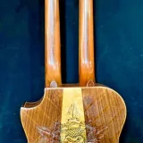 We can carve and inlay names, phrases and initials and we can even carve and inlay designs, faces and scenes from your photographs. Basically, if you can think of it we can get it onto your instrument.