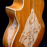 We can carve and inlay names, phrases and initials and we can even carve and inlay designs, faces and scenes from your photographs. Basically, if you can think of it we can get it onto your instrument.