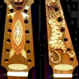 We can carve and inlay names, phrases and initials and we can even carve and inlay designs, faces and scenes from your photographs. Basically, if you can think of it we can get it onto your instrument.