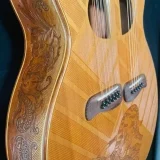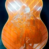 We can carve and inlay names, phrases and initials and we can even carve and inlay designs, faces and scenes from your photographs. Basically, if you can think of it we can get it onto your instrument.