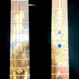 We can carve and inlay names, phrases and initials and we can even carve and inlay designs, faces and scenes from your photographs. Basically, if you can think of it we can get it onto your instrument.