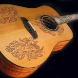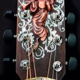 We can carve and inlay names, phrases and initials and we can even carve and inlay designs, faces and scenes from your photographs. Basically, if you can think of it we can get it onto your instrument.