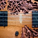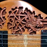We can carve and inlay names, phrases and initials and we can even carve and inlay designs, faces and scenes from your photographs. Basically, if you can think of it we can get it onto your instrument.