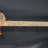 We can carve and inlay names, phrases and initials and we can even carve and inlay designs, faces and scenes from your photographs. Basically, if you can think of it we can get it onto your instrument.