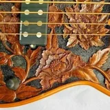 We can carve and inlay names, phrases and initials and we can even carve and inlay designs, faces and scenes from your photographs. Basically, if you can think of it we can get it onto your instrument.