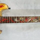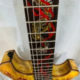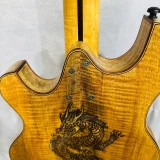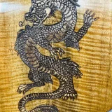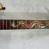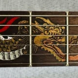 We can carve and inlay names, phrases and initials and we can even carve and inlay designs, faces and scenes from your photographs. Basically, if you can think of it we can get it onto your instrument.