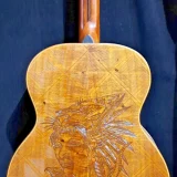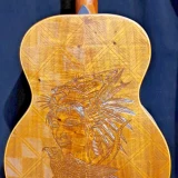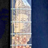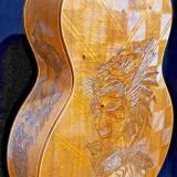 We can carve and inlay names, phrases and initials and we can even carve and inlay designs, faces and scenes from your photographs. Basically, if you can think of it we can get it onto your instrument.