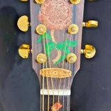 We can carve and inlay names, phrases and initials and we can even carve and inlay designs, faces and scenes from your photographs. Basically, if you can think of it we can get it onto your instrument.