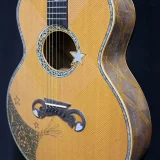 We can carve and inlay names, phrases and initials and we can even carve and inlay designs, faces and scenes from your photographs. Basically, if you can think of it we can get it onto your instrument.
