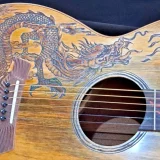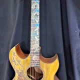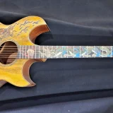 We can carve and inlay names, phrases and initials and we can even carve and inlay designs, faces and scenes from your photographs. Basically, if you can think of it we can get it onto your instrument.