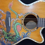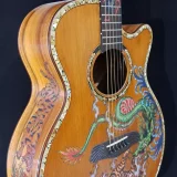We can carve and inlay names, phrases and initials and we can even carve and inlay designs, faces and scenes from your photographs. Basically, if you can think of it we can get it onto your instrument.