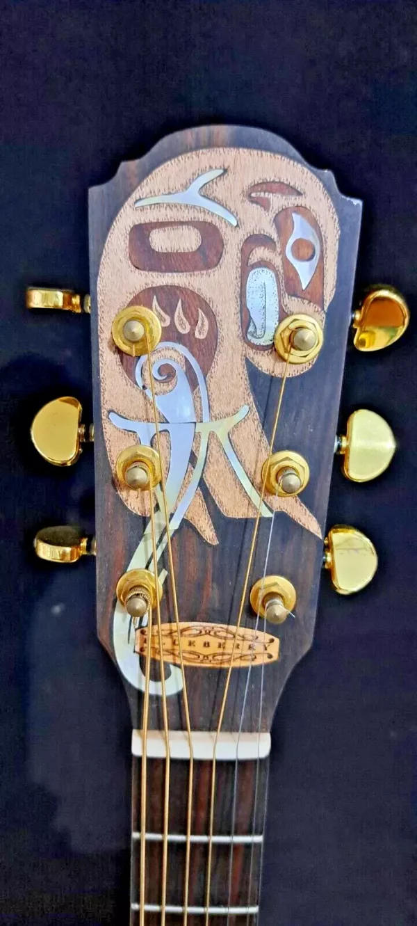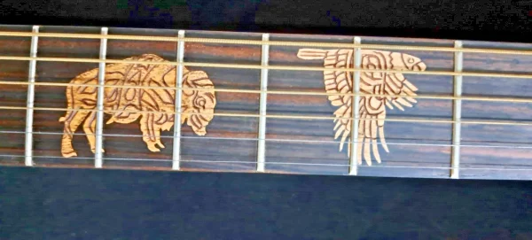 We can carve and inlay names, phrases and initials and we can even carve and inlay designs, faces and scenes from your photographs. Basically, if you can think of it we can get it onto your instrument.