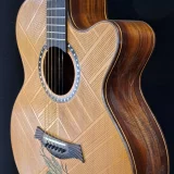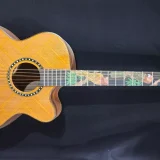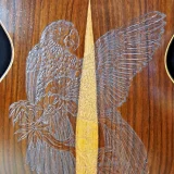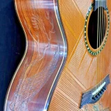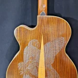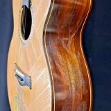We can carve and inlay names, phrases and initials and we can even carve and inlay designs, faces and scenes from your photographs. Basically, if you can think of it we can get it onto your instrument.