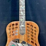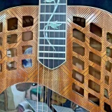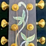 We can carve and inlay names, phrases and initials and we can even carve and inlay designs, faces and scenes from your photographs. Basically, if you can think of it we can get it onto your instrument.